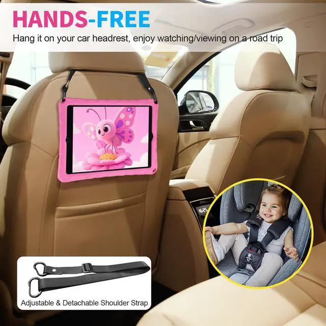 ADJUSTABLE SHOULDER STRAP: for iPad 9th generation case kids girls with portable shoulder strap provides a more flexible and convenient way to use the tablet during outside plying, study or journey, ideal for kids watching cartoon in the car, free hands and make more convenient in life! ^^
