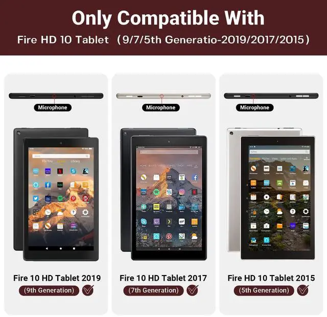COMPATIBLITY: ONLY fit for Fire 5th/7th/9th Generation Tablet (2015/2017/2019 Release). DOSE NOT compatible with any other model device. Please check the tablet model before you purchase ^^