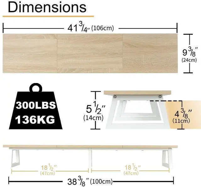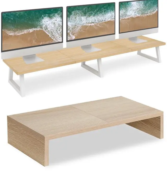 TEAMIX 42 inch+20 inch Monitor Stand Wood & Steel Desktop Riser for for Desktop Office Desk Organizers