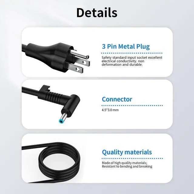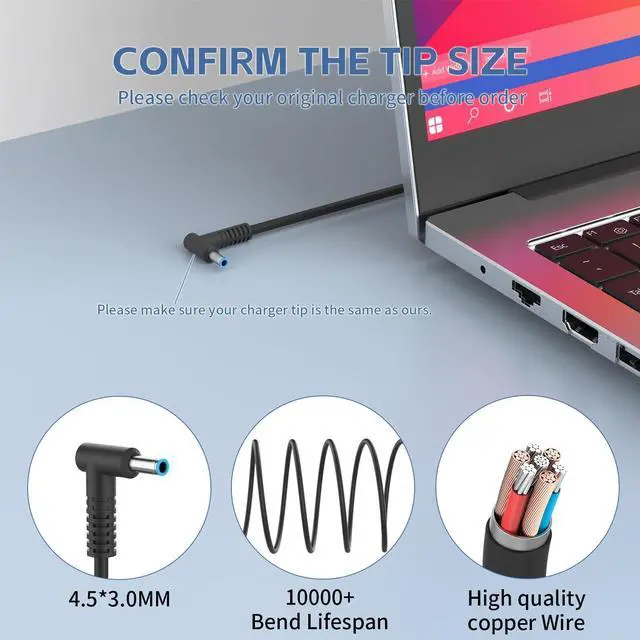 Connector Size: 4.5 * 3.0 mm(NOT fit 7.4 * 5.0 mm!!! ) ^^ Compatible with HP Omen 16-b1797nr 16-b1085nr 16-c0001dx 16-c0002dx 16-c0002dx 16-c0012dx 16-c0002ca 16-c0020ca 16-c0002ca 16-c0020ca 16-b0005dx 16-b0013dx 16-b0008ca Laptop Power Adapter ^^ Compatible with HP Omen 15 17 Series, Pavilion 15 16 17 Series Gaming Laptop, ZBook 15 17 G3 G4 G5 G6 G7, Envy 15, ZBook Studio G3 G4 G5 G6 G7 G8, ZBook Fury G7 G8, ZBook 15u G3 G4 Series, TPN-LA10, TPN-Q265 ^^ Compatible with HP ZBook Fury 15 15t 17 17t Series 17 15 G3 G4 G5 G6 G7 G8 Series 15 17 16 Series 15-dc1xxx 15-ax033dx 17-w033dx 15-dc0096nr 15-ce018dx 17t-cb100 15-ek0013dx 15-ek0023dx 17-100an 16-a0xxx