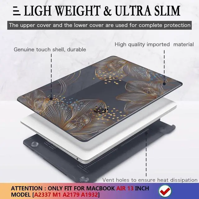 Only Compatible with MacBook Air 13 inch M1 Model A2337/ A2179/ A1932 Release 2018-2021. ^^ Please kindly check the model number "AXXXX" on the back of the laptop before purchase. ^^ NO Cut Out design, comprehensive protection for laptops.