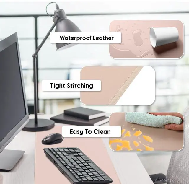 Quality Material: crafted from durable PU leather, this warm gaming mouse pad against scratches, stains, heat and scuffs, easy to clean, just wipe with a damp cloth or paper; The anti-skid bottom can prevent sliding, and the tight stitching ensure durability to keep your desk warm for a long time ^^
