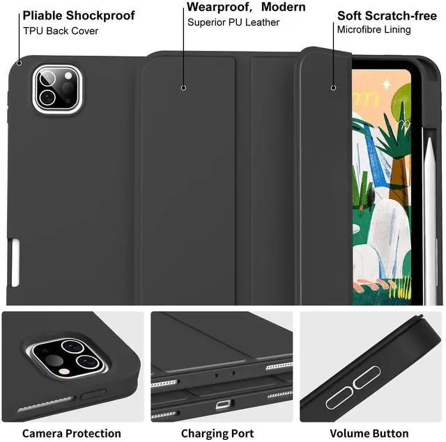 ^^ Full protection: This iPad 12.9 inch pro case with front PU leather and soft microfiber interior prevent your tablet from scratched. TPU Back cover and flexible bumper provide great protection for against scratches, shocks, drops and impacts.