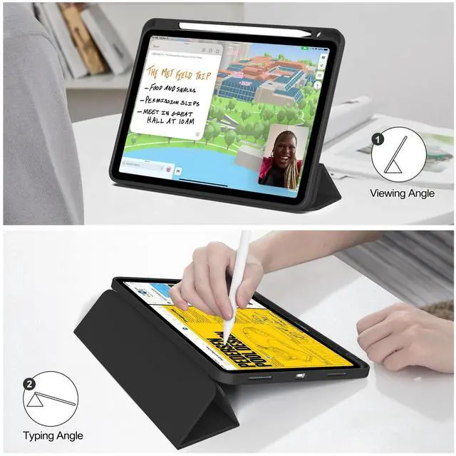Two Viewing Angles: The shell design of the tri-fold stand can easily change the angle to meet your viewing and typing needs, you can have an excellent experience when you are relaxing or working.