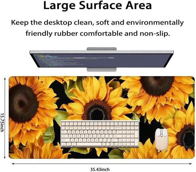 35.4 x 15.7 in, XXL Large Mouse Pad for Desk, Extended Keyboard Mouse Mat for Computer Office, Big Laptop Mouse pad, Gaming pc-Sunflower