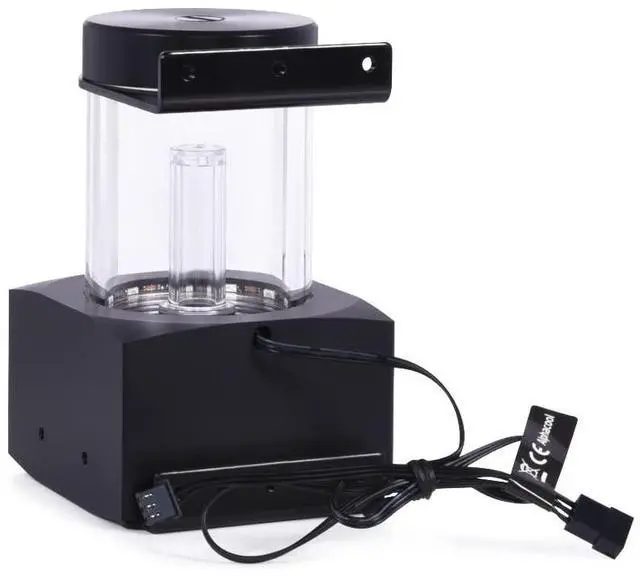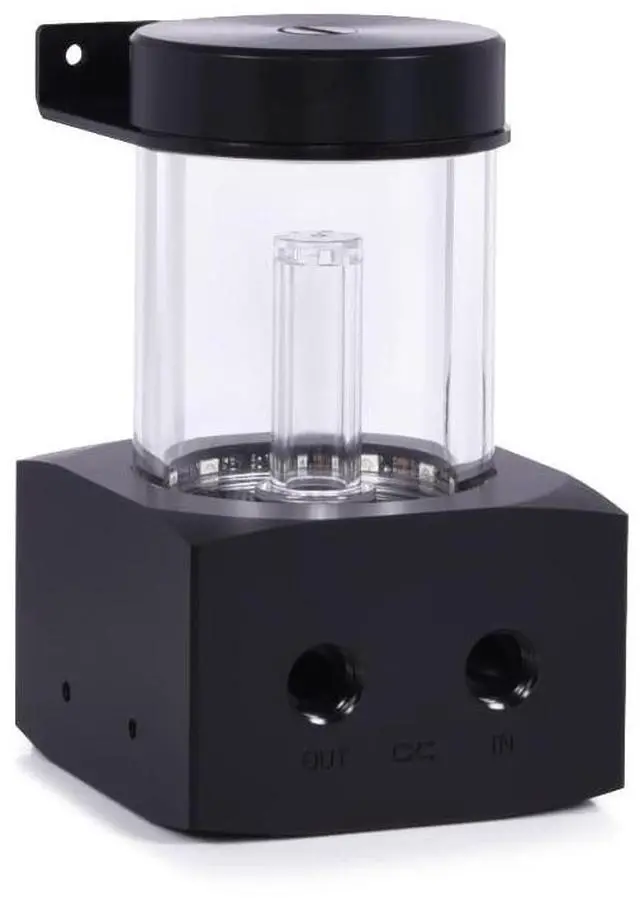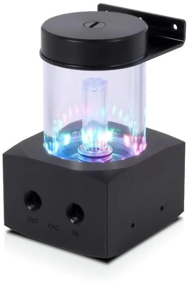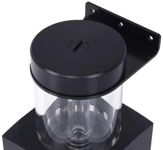 Mounting option 2: Included in the scope of delivery are 120mm/140mm mounting frames, which can be used to mount the Core expansion tank as desired on free fan spaces, radiators or on the fans on radiators. Pump compatibility The Alphacool Core expansion tank has an integrated pump top and is compatible with all original D5 pumps as well as all Alphacool VPP pumps. The pump retaining ring, a pump O-ring and all screws are included in the scope of delivery.