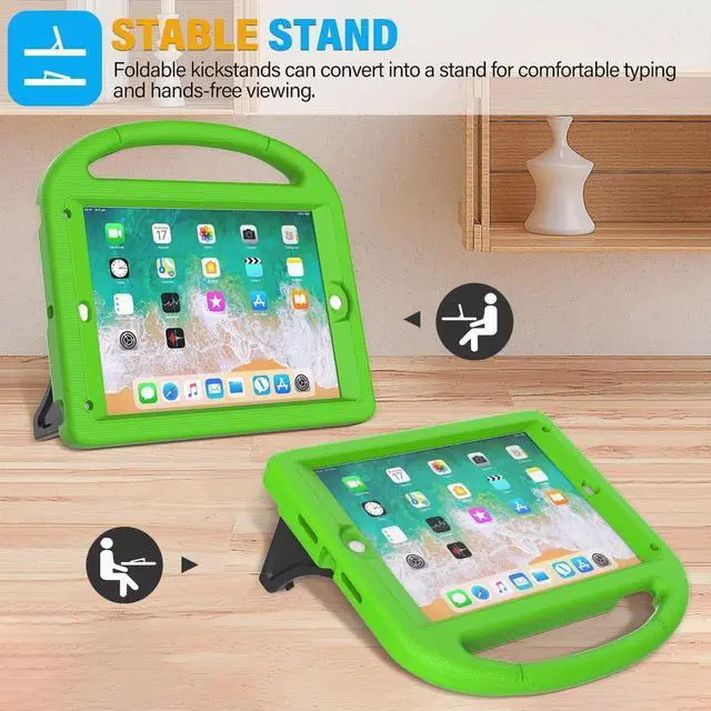 SUPLIK Kids Case for iPad 5th/6th Generation(9.7 inch, 2017/2018), iPad Air 2/1 & Pro 9.7 Kids Case with Screen Protector, Durable Protective Cover with Handle Stand for Apple iPad 5/6 Gen, Green