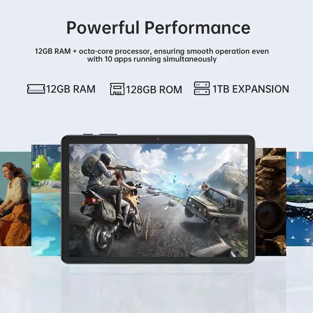 Massive Storage Our Android tablet comes with 12GB (4+8GB) RAM 128GB ROM and maximun 2TB TF card ( not included ) expandable ensures you of a fast APP launch and smooth gaming experience. tablet also come with pre-installed Google Play Store, you can easily download any needed Apps such as Facebook, Twitter, Youtube, etc. ^^ 10.1 -inch HD Eye-Care DisplayThe tablet features a high-resolution 1280800 IPS display, delivering vibrant colours across a wide screen for a more authentic viewing experience with sharper, brighter images. The front-facing 5MP and rear 8MP cameras effortlessly handle video calls, online learning, and more.