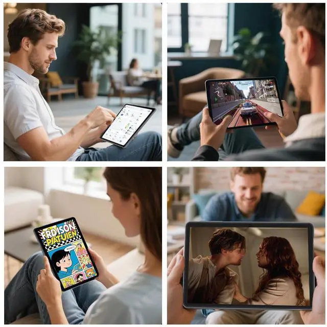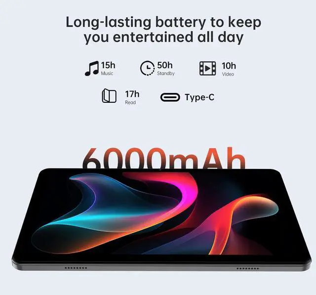 ^^ High-Capacity Battery, Rapid Charging Our 10-inch tablet features a built-in high-capacity, low-power CPU enabling up to 7 days of standby time, delivering up to 12 hours of blended usage for reading, watching programmes, gaming, and browsing. Equipped with fast-charging technology, it reaches full charge in just 2 hours via the convenient USB Type-C port. ^^ Wi-Fi + BluetoothThis 10-inch Android tablet incorporates the latest Wi-Fi technology and upgraded Bluetooth. Dual-band Wi-Fi ensures enhanced stability, while the latest Bluetooth 5.0 connectivity supports all your favourite accessories. This significantly boosts data transfer speeds, increases network capacity, and reduces latency.