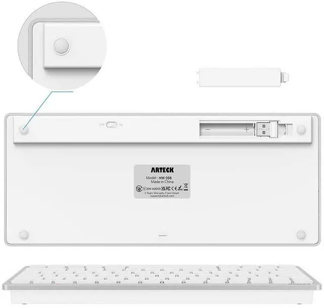 ^^ Package contents: Arteck HW098 USB Wireless Keyboard, nano USB receiver, 2 X AAA batteries, welcome guide, our 24-month warranty and friendly customer service.