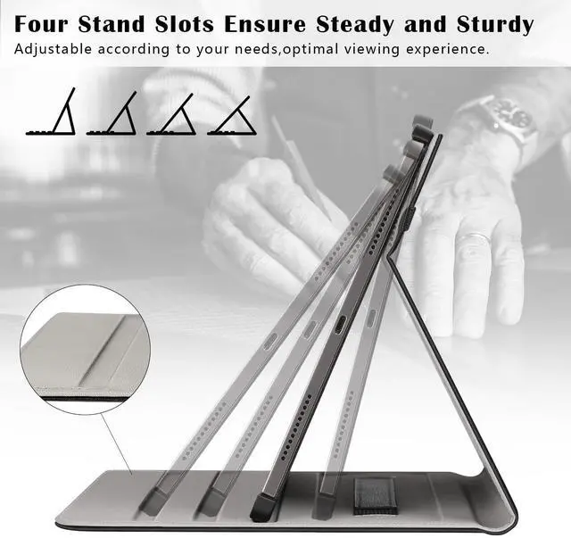 Generation2022/2021/2020 released)Model number: //////////////. Not fit any other iPad models. ( ) ^^ Supports Pencil Pro and Pencil (USB-C)The Pencil can be magnetically attached to the top of your iPad pro 13-inch 2024 m4, and supports wireless charging. You can place the Pencil to the stylus loop at any time to avoid losing it. ^^ Multi-functional Professional Design Multiple slots to set up multiple horizontal stand angles for watching movie or typing. The front document card pocket to keep notes, cash, cards. Built-in hand strap (one-handed operation). ^^ Full ProtectionClassic and professional design. PU leather exterior protect your iPad pro 12.9" from scratches, impacts, dust or any other daily damage. ^^ Support Touch ID and Auto Sleep/Wake Featuresmart folio for ipad pro 12.9 -inch cover supports auto wake & sleep function, which wakes or puts your device to sleep anytime. External elastic band enhances magnetic closure to save your electricity.