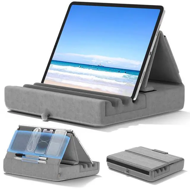 ^^ Multiple Viewing Angles - This adjustable tablet stand for lap leg cushion has three angles for you to adjust. Whether you are sitting or lying down, you can find the most comfortable viewing angle. The ergonomic design of tablet ipad pillow helps relieve neck and hand discomfort, thus freeing your hands to enjoy your leisure time. ^^ Wide Compatibility - The iPad pillow holder for tablet is suitable for all 4-13" tablet and other devices, such as compatible for iPad 9.7 inch, iPad 10.2" 2019, iPad Pro 12.9", iPad mini 2 3 4 5 Wi-Fi, iPad Air 2, iPhone 15 14 13 12 11 Pro Max, iPhone 11, Surface Pro, Galaxy Tab S8, S7, A8, A7, Switch, books and more.