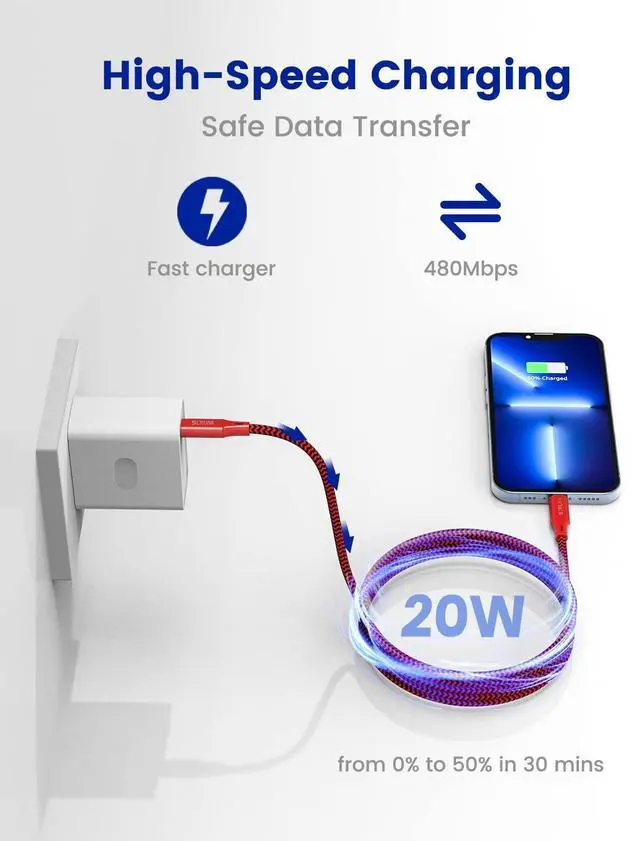 2Pack Super Long iPhone 17 16 Series Fast Charger Cord16FT/5M NylonPD Fast ChargingSupports high-speed PD charging for your Apple 17 16, 2.5 faster than USB A iPhone 17 16 cable. Safe Data TransferSupports data transmission up to 480Mbps, ensures the safety of your Apple devices to easily transfer music, files, pictures and videos between iPhone and MacBook. Nylon Braided iPhone ChargerThe 16 feet extra long iPhone 17 16 charging cord has a durable nylon braided design, sturdy nylon fiber cover makes the cable more durable, bendable, and makes it has extremely high resistance against wear and splitting, and gives it a more stylish and elegant appearance.