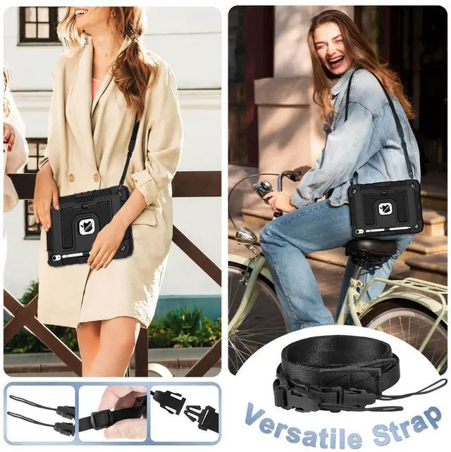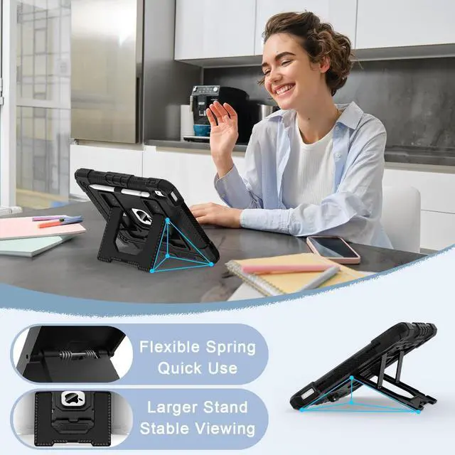 Model number: A3354/A3355/A3356 & A2696/A2757/A2777. Model number of your iPad is physically etched onto the back cover, Please find below the logo iPad ^^ Stable Larger StandThis upgraded iPad A16 case features a larger kickstand that provides stable support at 60 viewing and 45 typing angles. Enjoy your hands-free surfing, reading, or sketching at these comfortable angles ^^ Mil-Grade Drop ProtectionConstructed with a premium shock-absorbing silicone bumper and a structured hard PC frame, this 10th Gen iPad case offers your iPad triple layers of all-around protection against accidental drops or slips ^^ Portable Shoulder Strap Comes with a detachable and adjustable shoulder strap, easily carry around and get a quick grab on your iPad while youre on the go. Double security for kids dropping or scratching. Ideal for outdoor activities or school ^^ Precise Cutouts The case for iPad 11th Gen has precision custom-fit cutouts for full access to fingerprint unlock, volume control or charging port. Plus, the a16 iPad case has a compact holder to keep your stylus close at hand