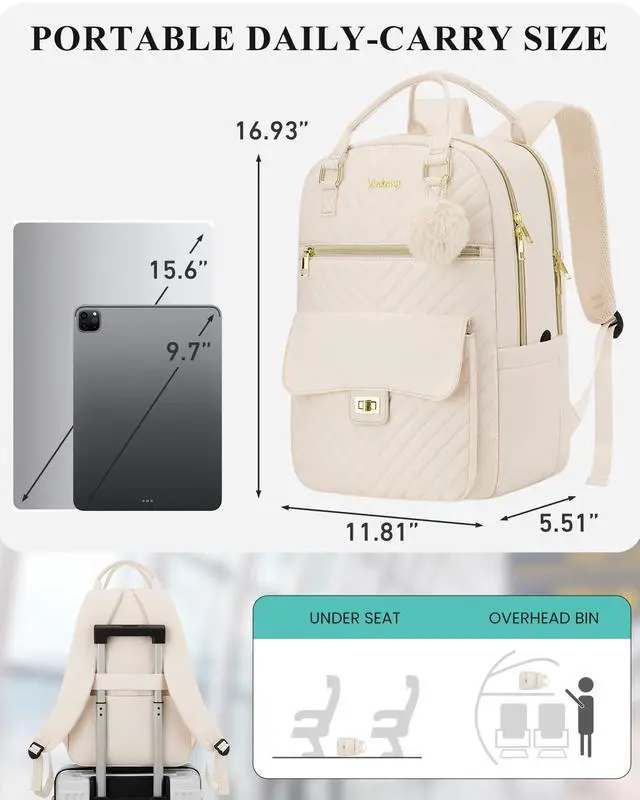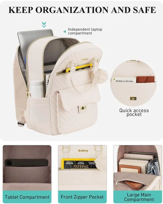 Large Capacity: Featuring a separate padded laptop compartment that holds and protects a 16 / 17 inch laptop, ensuring your tech stays safe on the go. The large main compartment is roomy for daily necessities, such as folders, text books, lunch box, clothes and electronic. Quick access front pockets are perfect for keeping all of your smaller items secure. On the outside, it has two water bottle pockets and a back anti-theft pocket for secure storage ^^