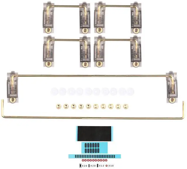 Package included: 2u wires 4, 6.25u/7u wire 1,housings/stems/screw/washers x 10 pcs,come with stab films (PCB stabilizer pads are added when necessary,do not use all of them or they will go mute).