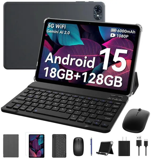 & Gemini AI: Smarter, Safer, and More Efficient] Stay ahead with the refined Android 15 operating system, offering enhanced privacy protections and seamless cross-device synchronization. Command Google Gemini AI with your voice to schedule tasks, get answers, or optimize settings hands-free. Its not just an OS it's your intelligent partner for a smarter digital life ^^ [6000mAh All-Day Battery & Daul AI Camera] Built with a long-lasting 6000mAh battery, this tablet supports up to 8 hours of video streaming, 6 hours of gaming, or 35 hours of music playback on a single charge. Capture crisp photos and scan documents with the 5MP camera, powered by Google Lens to identify objects, translate text, and enhance low-light shots instantly ^^ [5G WiFi & 2+2