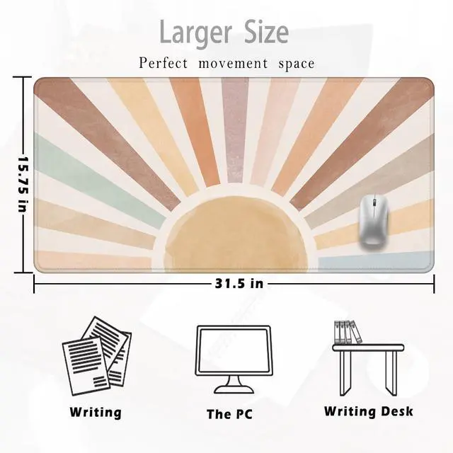 Foritho Boho Sun Large Mouse Pad 31.5x15.7inch, Sunshine Rainbow Large Extended Computer Desk Mat Mousepad for Keyboard and Mouse, Boho Desk Accessories