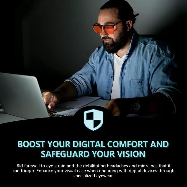 DescriptionOur lenses are specially treated to filter out high-energy blue light emitted by digital devices such as computers, TVs, and gaming consoles. By blocking these harmful rays, our glasses help to reduce digital eye strain, ensuring that your eyes remain comfortable and relaxed during long sessions of screen time.
