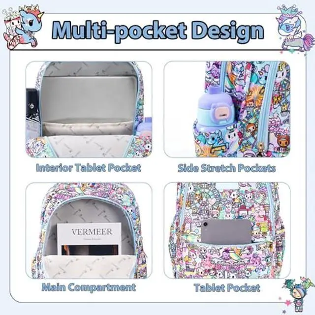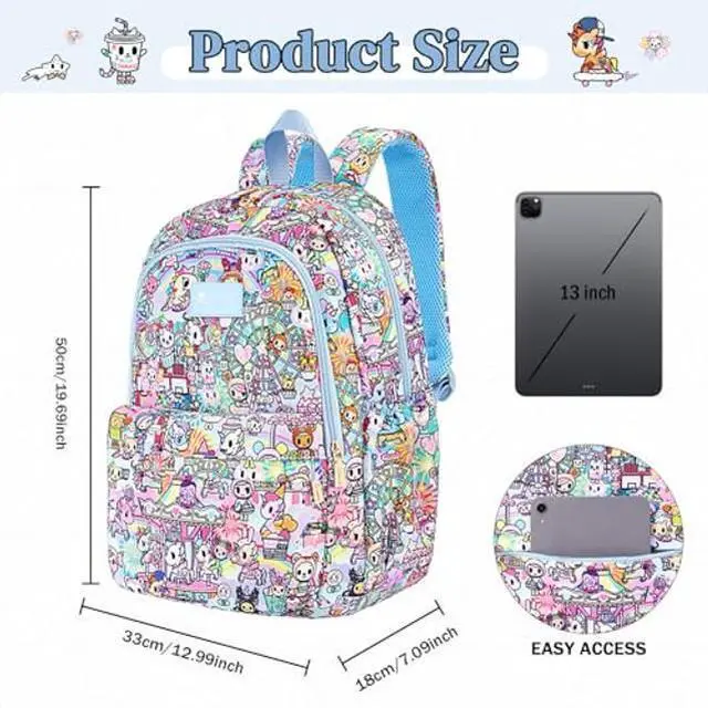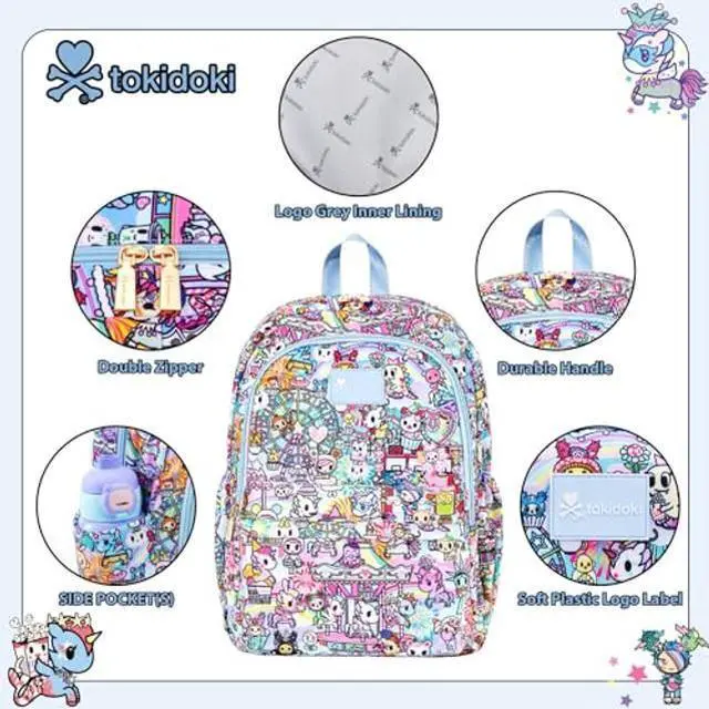 There is an inner pocket for a laptop, elastic side pockets hold an umbrella and bottle, and the main compartment fits a laptop, clothes, and books for easy access. ^^ Satisfaction GuaranteedEnjoy peace of mind with our tokidoki unicorno backpack, as we offer reliable after-sales support to address any concerns, ensuring a delightful shopping experience for every customer. Let the tokidoki backpack take you through the cute, happy, innocent world of tokidoki!