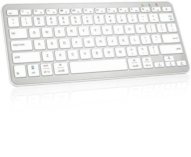 Qulose Bluetooth Keyboard, Ultra-Slim Wireless Keyboard for iPad, Rechargeable Ergonomic Computer Keyboard for iOS, Android, Windows PC Tablets Phone, White Silver