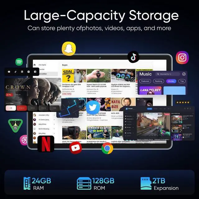 RAM+256GB+2TB: High Performance android 16 tablet experienc 24GB RAM (8+16) 256GB Rom 2TB (TF), providing storing over 55, 000+ photos or 300+ HD movies, don't need worry about storage space, Google tablet GMS-certified, Supports download heavy apps and files from the Google play store, ensuring broad compatibility, making this android 16 tablet 2025 a best android tablet for gaming, school, or as a computer tablet ^^ Imersive 11 Inch Display for