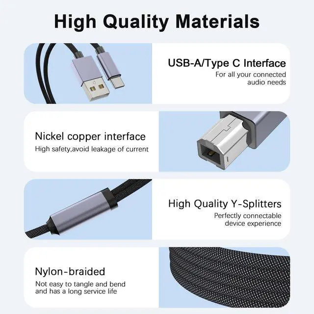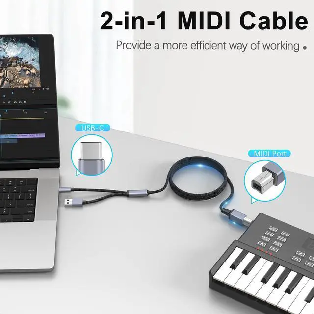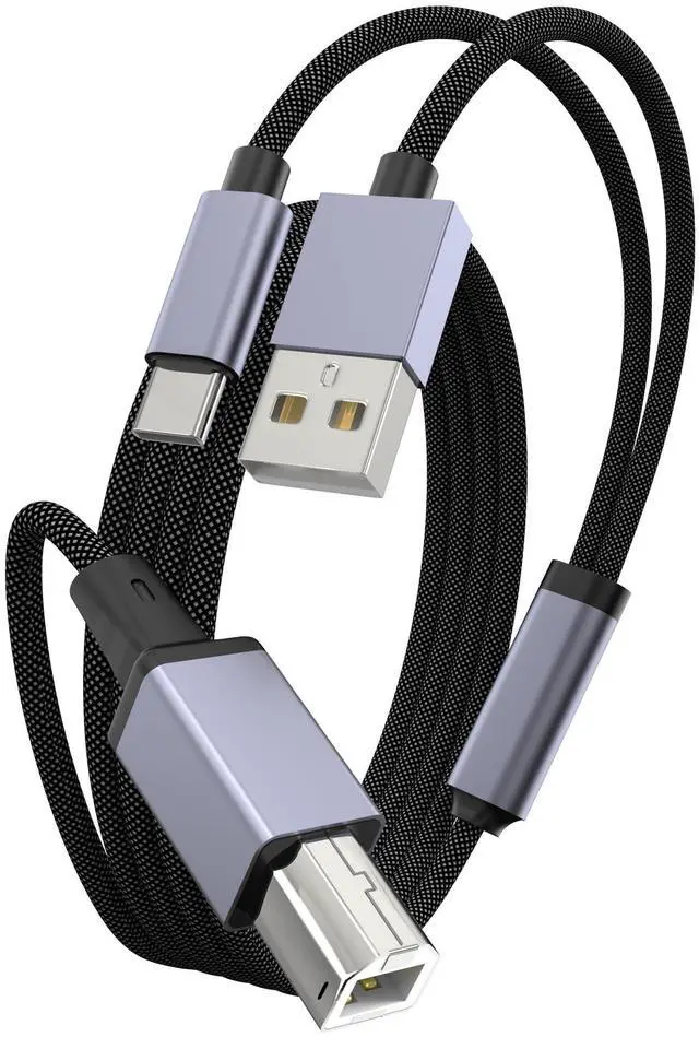 2-IN-1 USB A/C Printer Cable & MIDI Cable: This versatile 2-in-1 cable is designed to connect both USB-A and USB-C devices to printers, scanners, MIDI controllers, and digital pianos. Whether you're using a modern USB-C laptop or a traditional USB-A desktop, this cable ensures seamless compatibility and functionality with a wide range of devices.