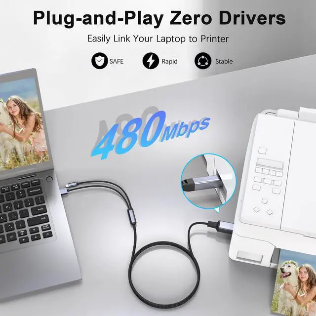 ^^ Warm Tip: Please be aware that this cable is designed primarily for data transfer and is not suitable for powering devices. Make sure your device has a USB 2.0 Type-B port before purchasing. Some devices may require driver installation, especially on MacOS and Windows systems.