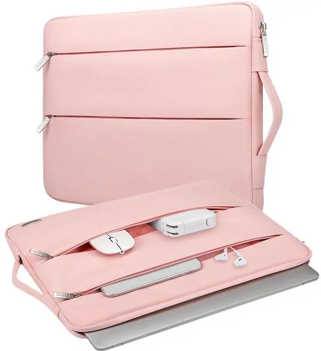 ^^ Easy to Carry: The deluxe laptop case has a retractable handle. The top handle instead of a side handle, so it makes laptop bag easier to get out of your backpack or suitcase. If you tend to drop things so the laptop case having a handle is very convenient, not have to hold it and worry about it slipping out of your hand.