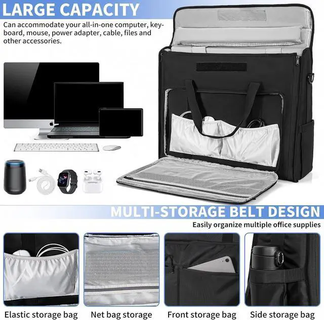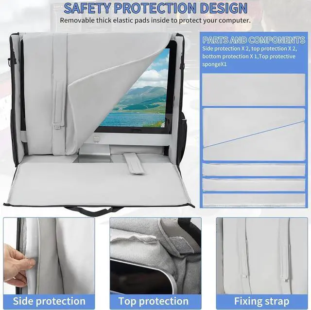 Tailored Protection for iMacSoft inner velvet liner belt secure your iMac in place, while the fully padded interior with sponge lining helps shield your screen from scratches and bumps ^^ Protect SeriesIPEB Cases Creative protect series, Padded Oxford creative professional Tote Bag designed to fit 24"size Apple iMac desktop computers.
