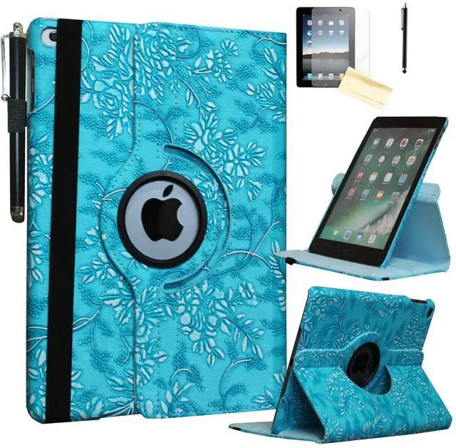 JYtrend Smart Case for iPad Air 1st /Air 2nd Generation (9.7 in) with Pencil Holder, Rotating Stand Magnetic Auto Wake Up/Sleep Cover for iPad Air 1/2 A1474 A1475 A1476 A1566 A1567 (Embossed Flower)
