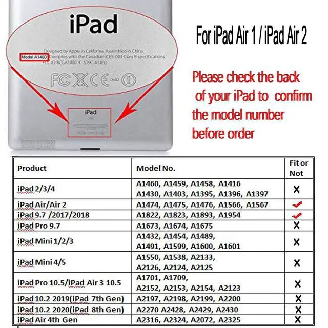 • Specially designed for 9.7 inch iPad Air 1(2103 Released) and iPad Air 2(2014 Released) -including the following Models: A1474, A1475, A1476, A1566, A1567