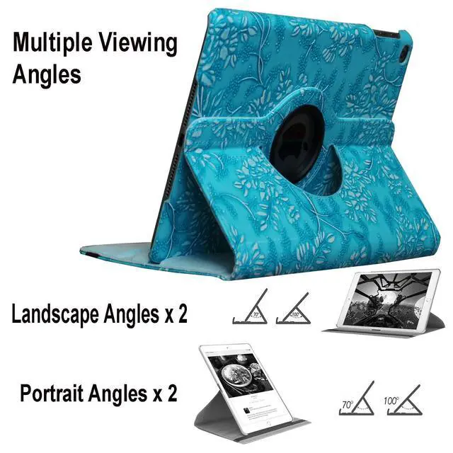 Models: A1474, A1475, A1476, A1566, A1567 ^^ Auto wake up and put your iPad to sleep ^^ 360 degrees Rotation in the case for flexible landscape and portrait viewing ^^ Dual Layer hard shell mount and premium synthetic leather exterior perfectly protects the device against damage and scratches. Elastic band holds iPad closed securely while on the go. ^^ Bult with a pen holder. Full accesses to all features and ports