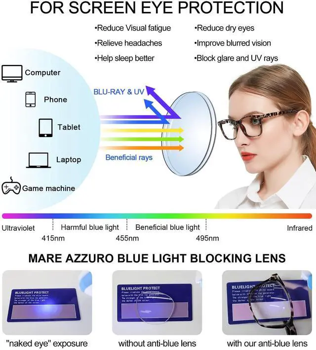 ^^ NO SHOPPING RISK: 1* 2.00 bluelight reading glasses, 1*glasses screwdriver to tighten the screws regularly, 1*Glasses rope to avoid loss and breakage, 1*Glasses cloth & glasses bag to keep readers clean, 1*Brand packaging box as a beautiful gift. 100% replacement or refund service, if any damage occurs to the product, please contact MARE AZZURO service team to solve the problem quickly and effectively.