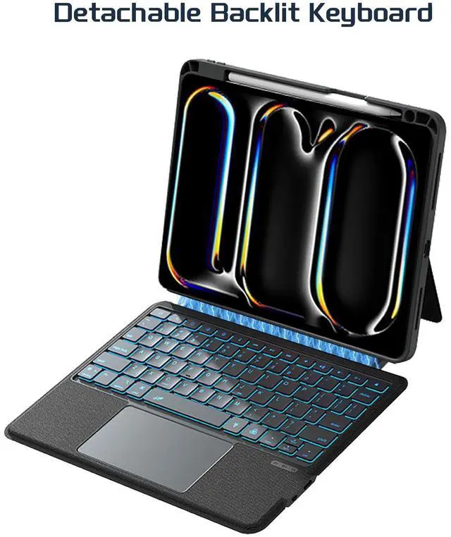 Pencil holder: Keep your Pencil securely attached to your iPad with the built-in holder, while the enhanced magnetic cover offers maximum protection with a shock-resistant design and honeycomb heat dissipation prevents overheating and keeps iPad performance stable. ^^ Backlit Keyboard with