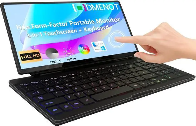 Enjoy silent, accurate keystrokes for focused work, while touch gestures (swipe to switch, pinch-to-zoom, drag-and-drop) replace mouse operations, enabling smoother and more intuitive multitasking. ^^ Fusion of Functionality and AestheticsThe keyboard features 7 customizable RGB backlight modes (toggle via FN+Q/W/E), adding a visual rhythm to workflows and boosting immersion. The 99-key scissor mechanism ensures smooth, quiet typing alongside 10-finger touch support, redefining input versatility. ^^ Seamless Display Upgrade for Immersive VisualsIdeal for PC and Mini PC users, the display boasts 1920720 resolution and 72% NTSC color gamut, with fully laminated glass to eliminate the "air gap" for sharper visuals.