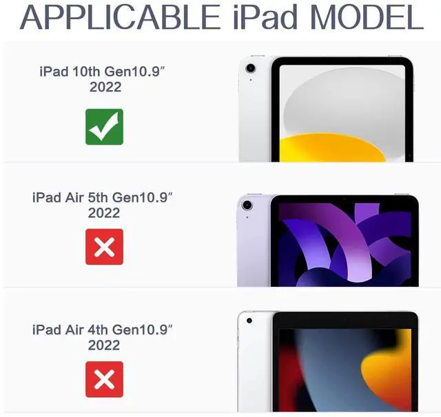 THIS Case for iPad 10th Generation Case 2022 CASE IS COMPATIBLE ONLY WITH THESE A#### MODEL #'S: Case Compatible for iPad 10th generation 10.9 -inch 2022 (Model: A2696/A2757/A2777)ServiceThe Case for ipad 10th generation colors and images can be preserved for long time. offers 1-year free replacement for your purchase, Please feel free to contact us if you have any question with your purchaseFIND YOUR TABLET MODEL NUMBER IN SETTINGSSTEP 1 - Go to settings and select "General"STEP 2 - Select "About"STEP 3 - Tap on the MU model number and a model number starting with A & 4 digits will appear