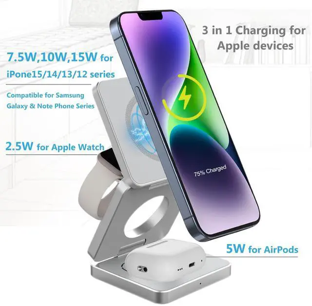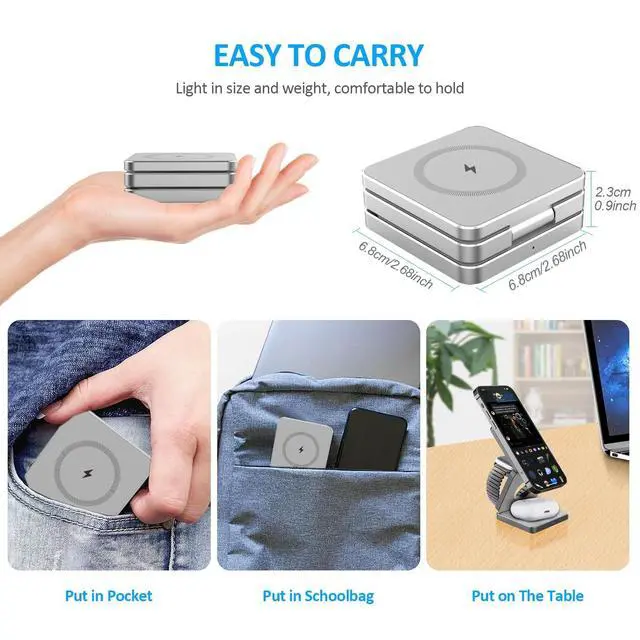 ^^ Fast Charging Power: Ensure your devices are efficiently charged with up to 7.5W --15W for phones, 5W for earbuds, and 2.5W for watches. The charger is versatile, making it ideal for company work desk, window sills, living room or bedroom, providing quick and reliable power delivery. ^^ Foldable and