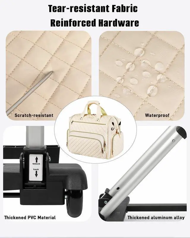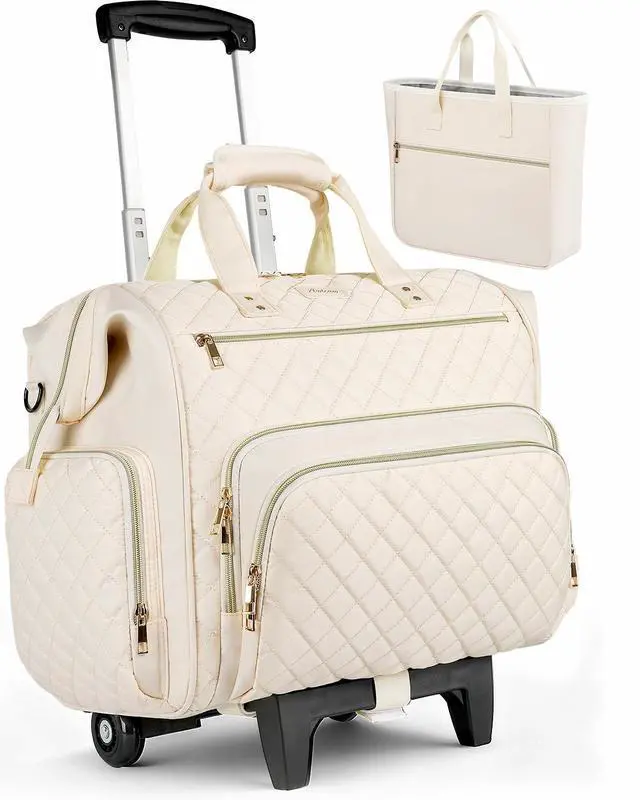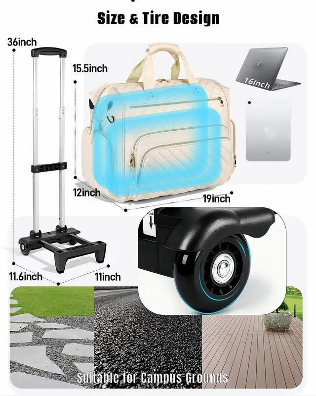 Trolley Designed: This wheeled tote bag ( 17.3 inches long x 10.5 inches wide x 13 inches high) features a detachable trolley and two smooth-running wheels for easy movement around. This wheeled laptop bag makes commuting easier and provides ample everyday storage space, making it ideal for teachers, counselors, and lecturers ^^ Tote