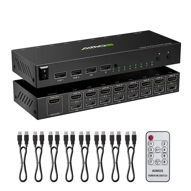 HDMI KVM Switch 1 Monitor 8 ComputersThe KVM switch supports 8 computers by only one set of wired or wireless keyboard mouse share 1 monitor and 4 USB devices. Save space and cost and improve your PC management efficiency without having to buy additional monitors or keyboards. ^^ USB 2.0 HDMI KVM SwitchHDMI KVM switch with 2 USB 2.0 hub port which can recognize USB devices, such as keyboard, mouse, printer, scanner, hard drive, etc.