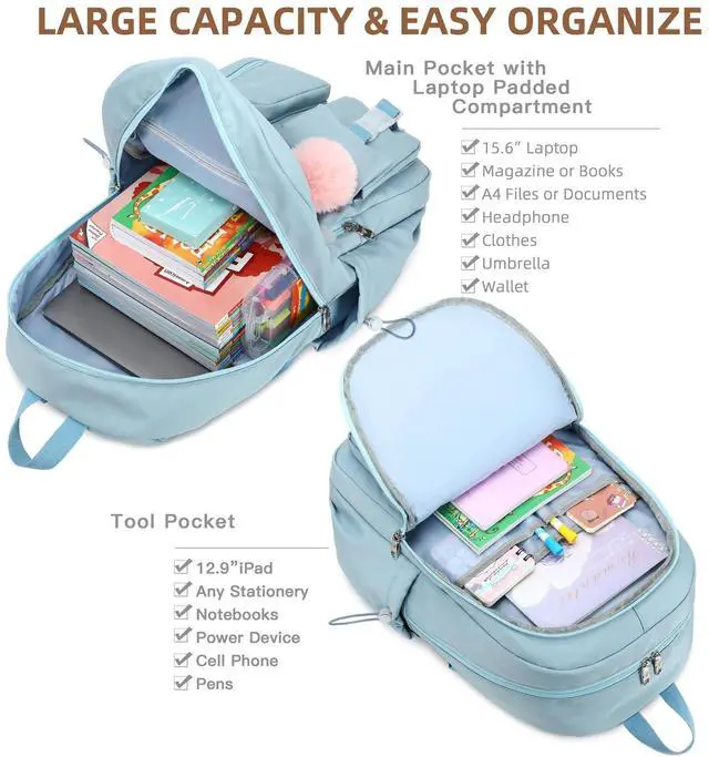 Large Size & Gift: The size of back pack is 13.8" x 7.5" x 17.8" (L*W*H), Weight: 1.65 LB. The laptops bag with padded compartment sleeve fit for 13.3, 14, 16 inch tablet. This women book bag also along with fluffy ball key pendant as gift makes the bags more fashionable and unique ^^ Waterproof