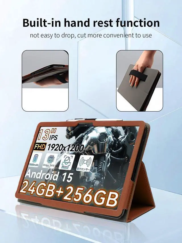 Case for SVITOO G99 Tablet 13 inch Android 15 Tablets,UYRUREL Leather Slim Folding Stand Cover with Hand Strap Magnet for Men Women Full Protection,Brown.