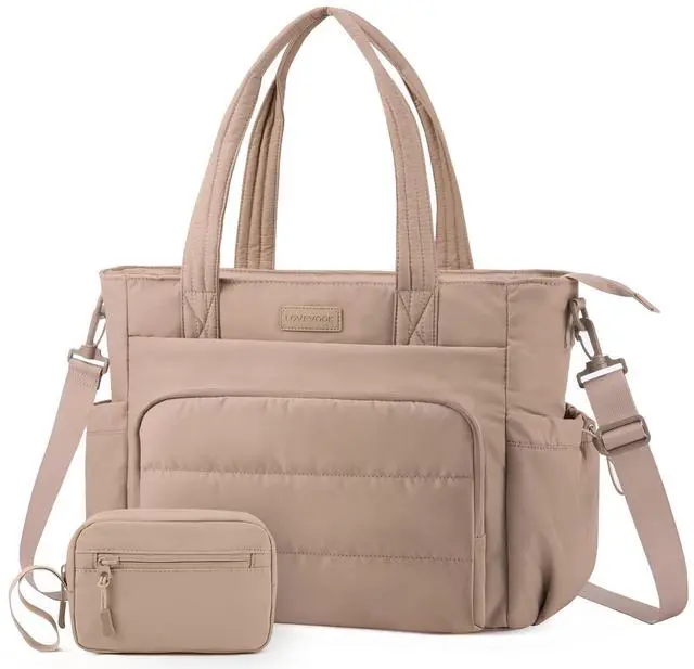 LOVEVOOK Tote Bag for Women, 15.6 Inch Puffer Laptop Work Tote with Cup Holder, Quilted Nurse Bag for Travel, Gym, Daily Use