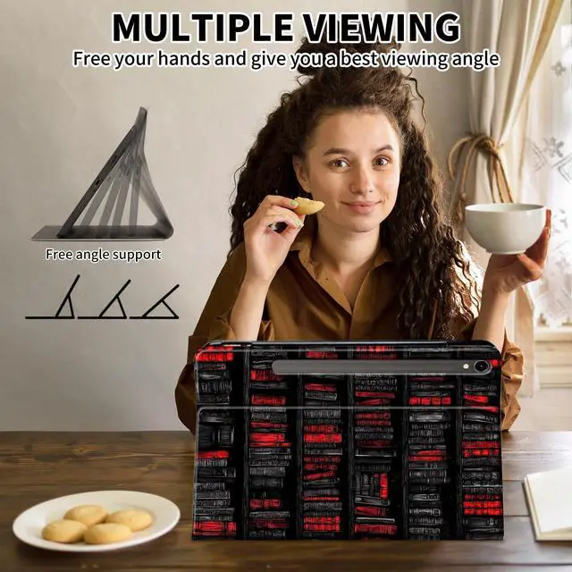 Anti-Slide Design: The cover for samsung galaxy tab s9 fe provides 3 anti-slip strips allow you to adjust your tablet to multiple stable angles, free your hands for other entertainments3. Automatically wakes or puts for galaxy tab s9fe case to sleep when the lid is opened and closed. Helps to save more power and extend the battery life4.