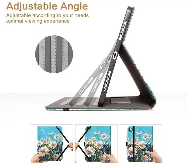 ATTENTION: NOT Fit for iPad Air 11/13 Inch (M2) 2024; NOT Fit for iPad Pro 11-inch (M4) 2024; NOT Fit for iPad Pro 11 inch 4th/3rd/2nd/1st Gen 2022/2021/2020/2018; NOT fit for iPad a16 11th/10th/9th/8th/7th Gen 2025/2022/2021/2020/2019). ^^ [Precise Cutouts & Adjustable Angle & Smart Auto Sleep/Wake]: Precise cutouts let you access to all ports, speakers, controls and cameras. Built-in pencil holder on the soft back cover for you to grab or carry it easily and conveniently. With three anti-slip stripes design for the iPad to sit in to stabilize it, never slips when you have it in a tilting position. Built-in magnetic strip ensure it automatically wakes your iPad when opened and puts it to sleep when closed to save battery life. ^^ [Full