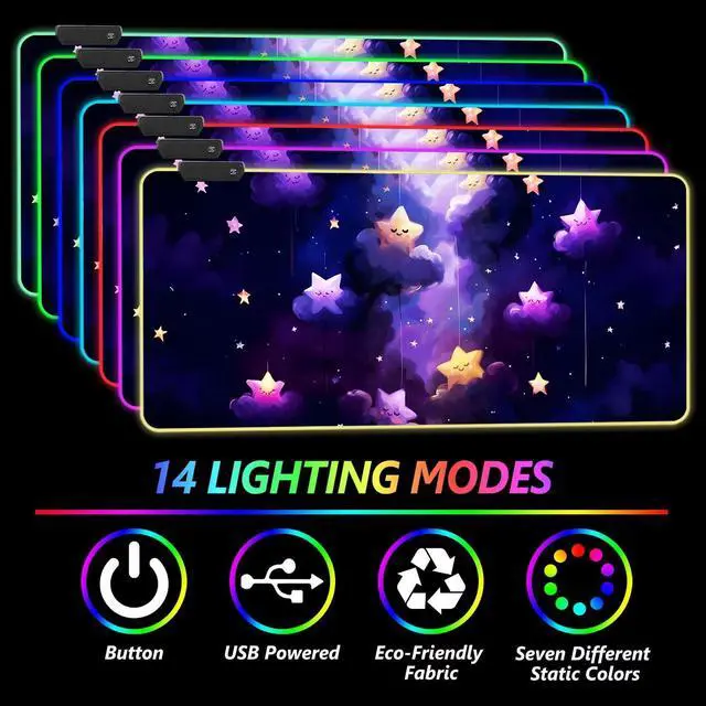 Are you still worried about how to be in the game when the immersion? Are you still worried about how to dress up the game space? Choose DINKYRGB large gaming mouse pad, 14 kinds of lighting mode red, blue, green, purple, cyan, yellow, light cyan, alternating wave, synchronizing wave, alternating flash, alternating red changing, lights off, synchronize breathing switch at will, for you to eliminate the trouble!!!