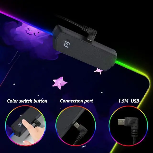 Included: 1 Large RGB Gaming Mouse Pad. 1 x cup coaster. 1 x Data Line.