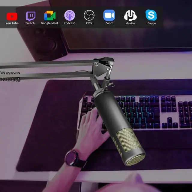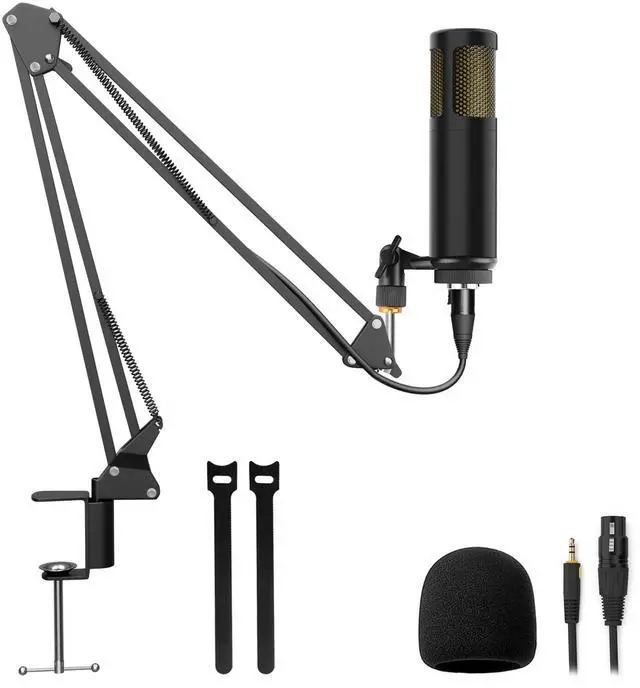 Packing List: 1X dynamic microphone, 1Xshock mount, 1X boom microphone arm, 1X microphone foam cover, 1X XLR to 3.5 mm cable