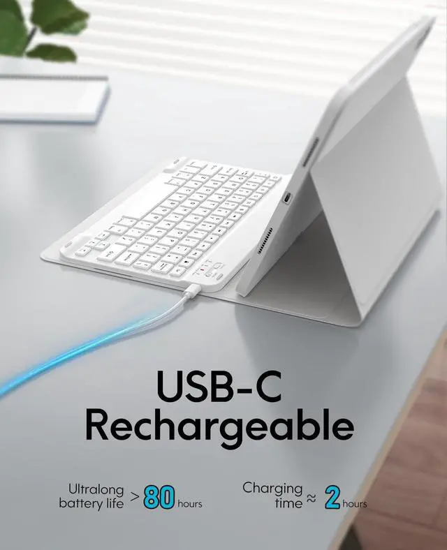 Perfect for working, writing or watching videos at office, school and home. ^^ EXCELLENT PROTECTIONThe keyboard case comes with anti-slide design and 360 full protection against drops, bumps or bents, protecting your tablet from all sorts of dropping accidents. Specially designed 4 raised little rubbers on the edge of keyboard protect the screen better and tablet from being scratched by keyboard. With a keyboard protector prevents liquid or other objects from entering the keyboard. ^^ PENCIL HOLDER & CUTOUTS & BATTERYBuilt-in Apple Pencil holder, cap & adapter slots, storage your Apple Pencil, easily to carry your tablet Stylus Pen and use when needed.