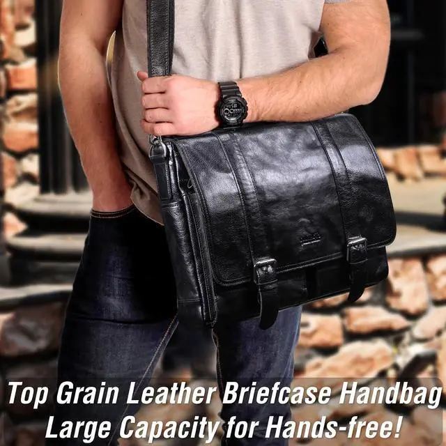 Elegant Top Grain Leather Our Laptop Crossbody Briefcases are crafted from premium top grain leather, known as Chamois Leather, this craft boasts a smooth texture and a refined appearance. Resistant to scratches, it ages beautifully, enhancing its elegance over time! ^^ Vintage Design, Modern Utility This handmade craft combines a minimalist vintage design with practicality. Sized at 14.57" x 11" x 3.15", it's perfect for compatible with 14"/ 13.3" MacBook and other PC. Offering protection without sacrificing portability! ^^ Genuine Quality, Lasting Durability Our top grain leather showcases natural characteristics, setting it apart from artificial materials like split grain or PU.
